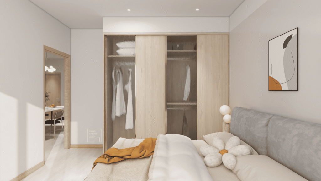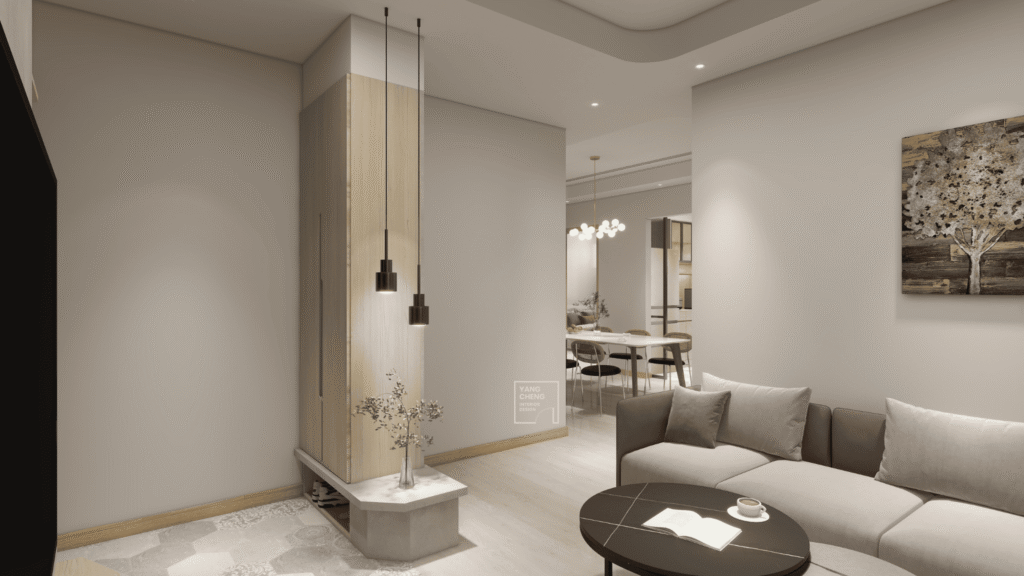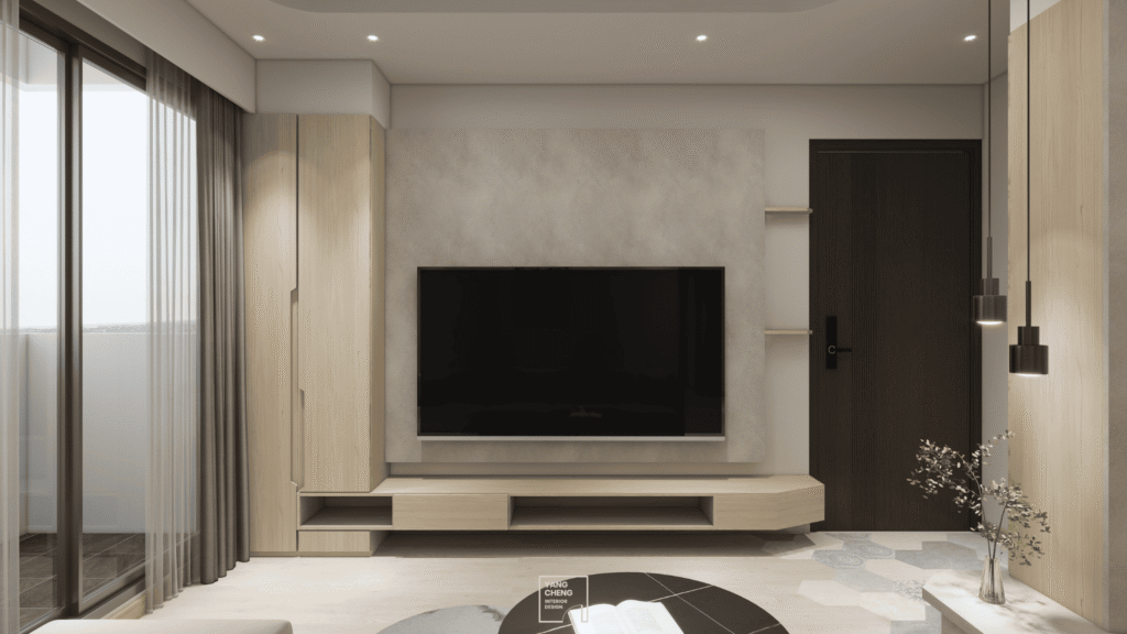 空間設計回歸本質,展演現代簡約的沉穩節奏。以溫潤木質與柔光色系交織出一處靜謐而溫暖的生活場景。整體空間大量運用淺木、白色與灰調材質,搭配流暢的線條與俐落設計,形塑出無壓且輕盈的視覺感。餐廳與公共區域透過自然光的引導與簡潔輪廓的勾勒,展現純粹與機能並存的日常質感。電視主牆以灰色特殊塗料結合木紋,細膩界定視覺重點,在靜默中蘊藏豐富層次。整體設計於簡與靜之間,勾勒出生活的節奏與家的溫度。