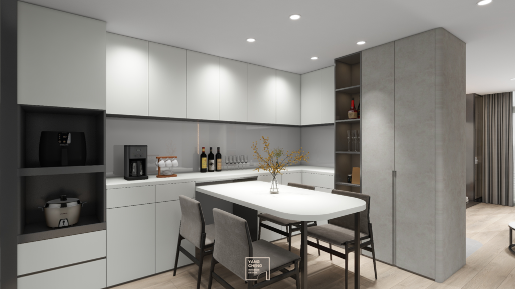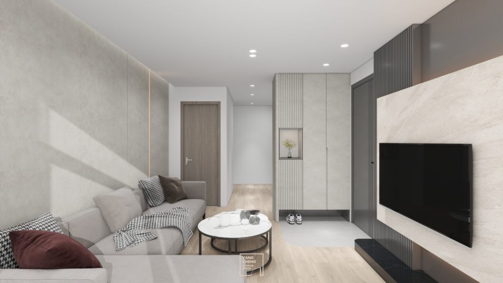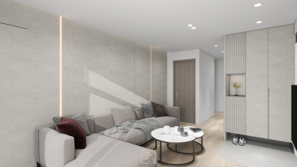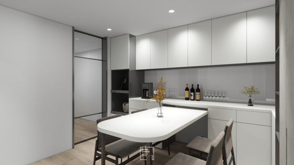 延續現代簡約的設計語彙,整體以柔和灰白與溫潤木紋為主軸,呈現理性與溫度並存的空間語言。客廳以低彩度搭配局部光源,創造出層次分明的視覺延伸,並強化整體氛圍的靜謐感。開放式廚房結合用餐區域,不僅提升生活動線的流暢性,也讓家人之間的互動更加自然親近。大量收納巧妙融於空間,保持整潔同時兼顧美感。整體設計在細節中體現秩序感,讓每一處都回歸實用與美學的平衡。